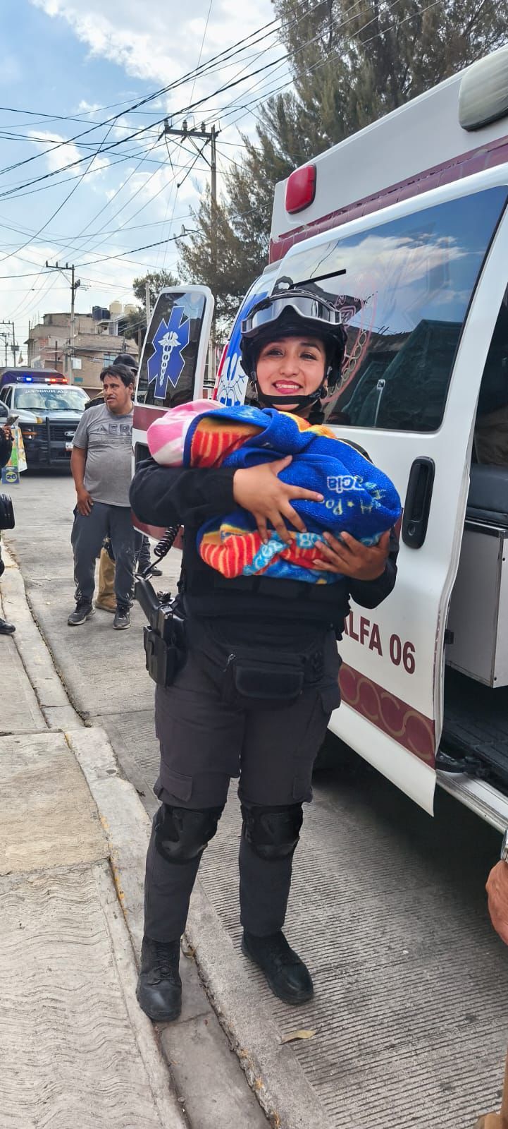 CHIMALHUACÁN, MÉX., a 20 de abril de 2026.- Elementos de la Dirección General de Seguridad Ciudadana de Chimalhuacán auxiliaron a una mujer en labor de parto en la colonia Orfebres del municipio mexiquense, donde, gracias a la intervención oportuna, fue posible atender el nacimiento de un bebé en condiciones seguras.