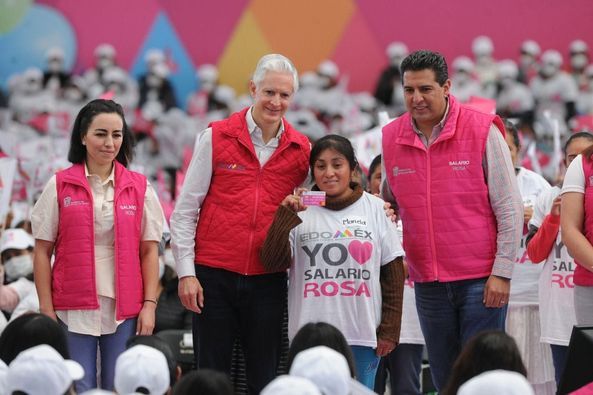 ’Y nos da mucho gusto, que de todas las beneficiarias del Salario rosa, que ya son más de 600 mil en todo el Estado de México, en los 125 municipios, el 80 por ciento, ocho de cada 10 se han capacitado, se han esforzado para aprender algo nuevo, para aprender algo que les permita generar un ingreso adicional a sus casas’, dijo.