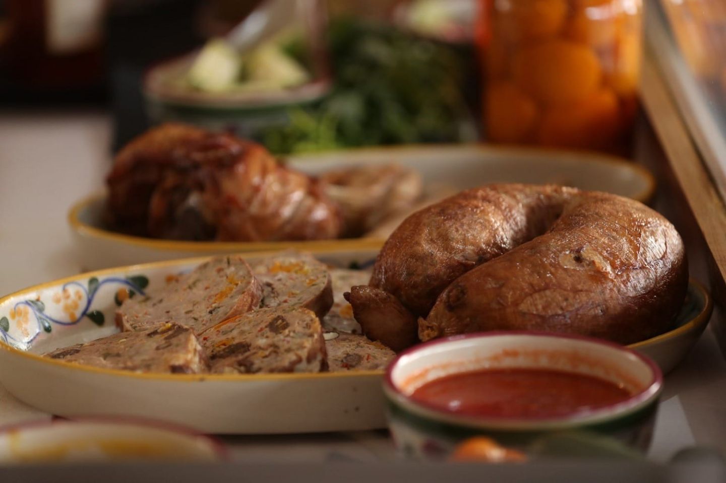 Se sazona con chile manzano, semillas de cilantro y epazote y cuando la preparación es especial se le adicionan pasas, piñones y almendras. La mezcla se embute en pancita de cerdo o en fibras naturales. Un toque especial se le da cuando se cocina a la leña.