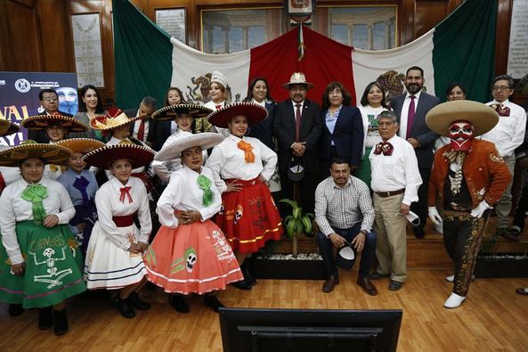 Asimismo, la comparsa Calaveras A. C. de Chimalhuacán, integrada por charros y charras que portaron la vestimenta típica que distingue a esta tradición, mostró los pasos del carnaval, acompañados por la música de la Orquesta Municipal "Chimalli Yolotl", que interpretó pasos dobles, virginias, entre otras piezas musicales.