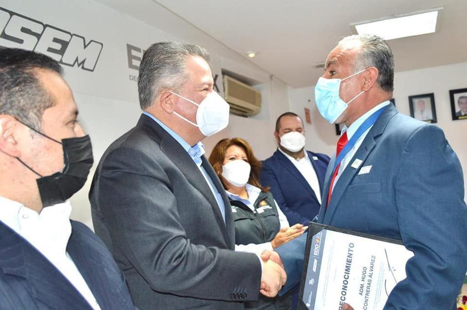 Finalmente, acompañado por el Director de Servicios de Salud, Jesús Reyna Figueroa, el titular del ISEM, entregó reconocimientos a los trabajadores con mayor antigüedad y reiteró la felicitación por su entrega y compromiso a favor de la población más vulnerables de la entidad.