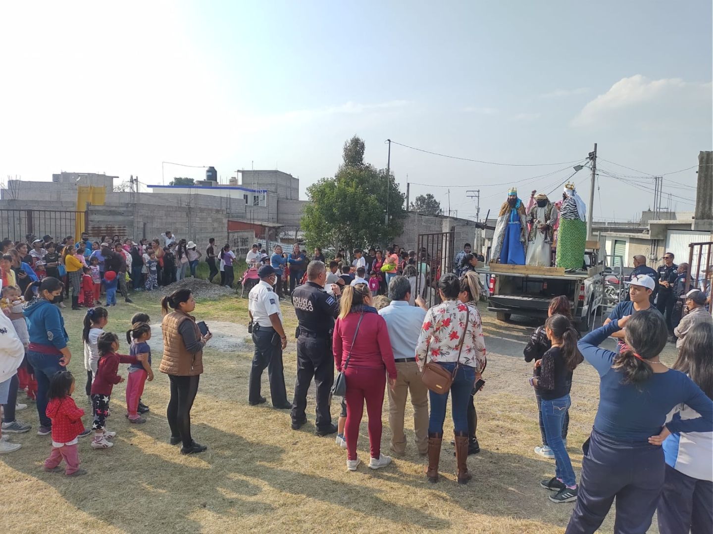 Durante el primer día, la policía municipal de Texcoco llevó regalos para los pequeños de la Magdalena Panoaya y Lázaro Cárdenas Tocuila, en la comunidad de Coatlinchan los elementos policiacos visitaron Valle Tláloc, La Cartonera, la Ranchería y Rancho San José.