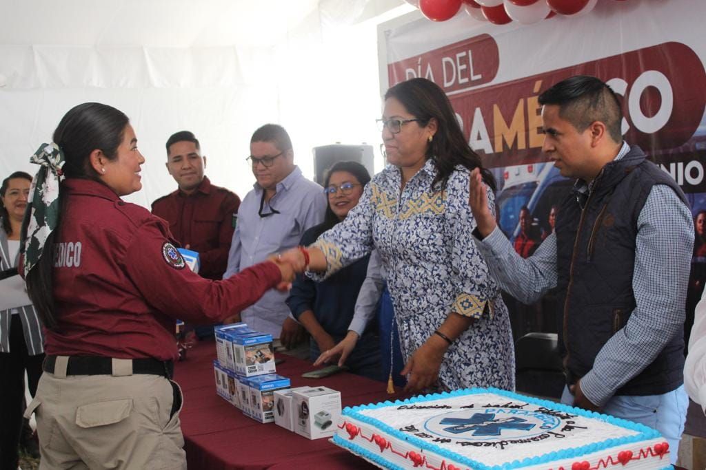 Flores Jiménez exhortó a los paramédicos a continuar realizando su importante labor, en la que con entusiasmo y profesionalismo salvan las vidas de los habitantes de Chimalhuacán que viven una emergencia.