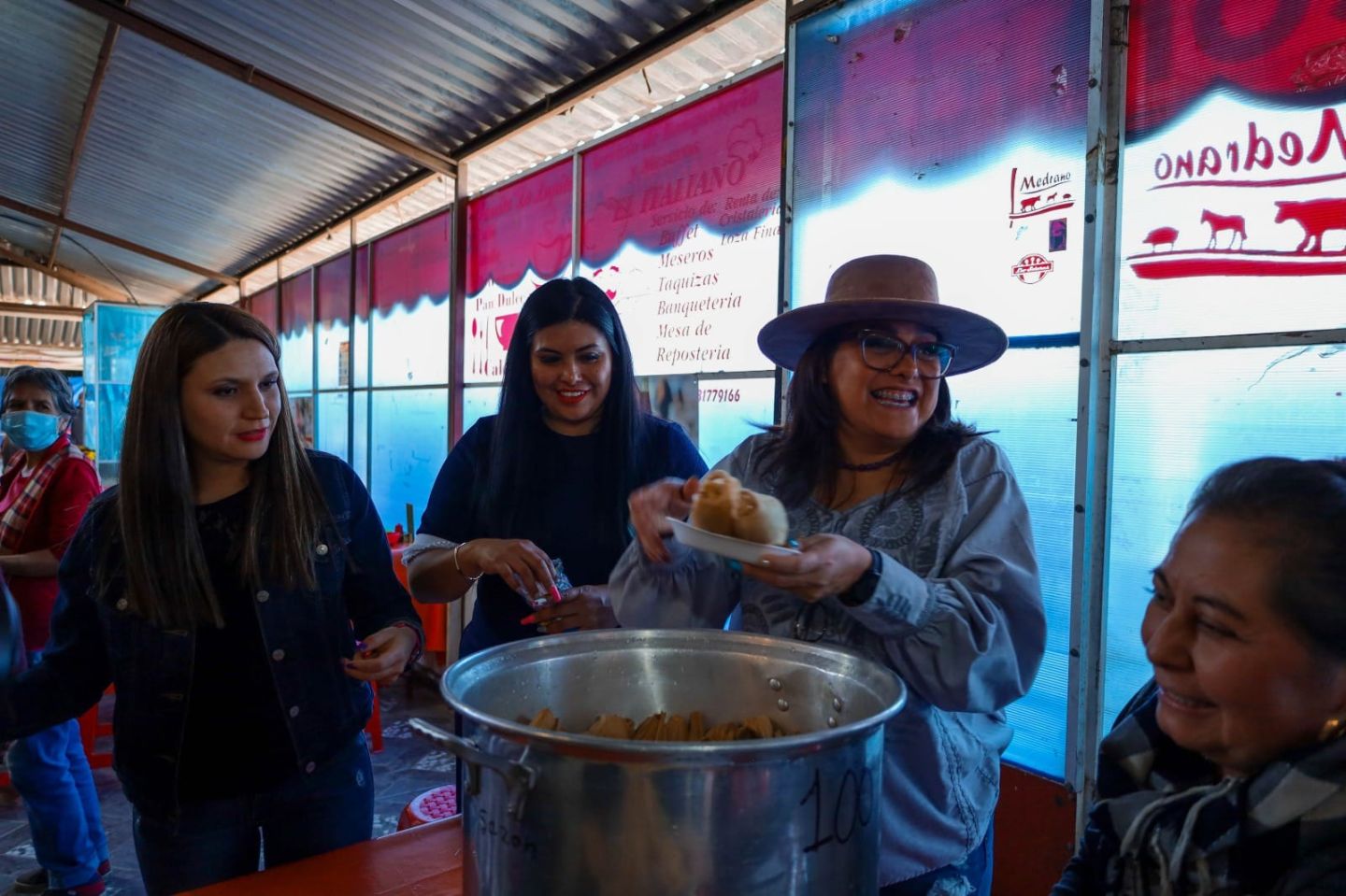 Desde temprano la presidenta municipal de Texcoco, Sandra Luz Falcón Venegas, regidores, el director de Seguridad Pública y Movilidad Adrián Trápala González, la directora de desarrollo Económico Arleny Alena Soria González Vélez y el Diputado Local, Nazario Gutiérrez Martínez, visitaron el mercado municipal ’San Antonio’, en donde los integrantes de la mesa directiva ya tenían preparada ’la tamaliza’.