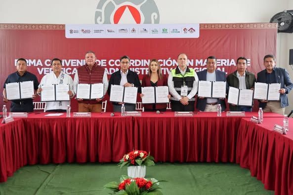 La Paz, Estado de México., 4 de septiembre de 2025.- El Gobierno de la Maestra Delfina Gómez Álvarez, a través de la Consejería Jurídica, firmó convenios en materia de verificación administrativa con nueve municipios como parte del plan integral que se impulsa en la zona oriente de la entidad.