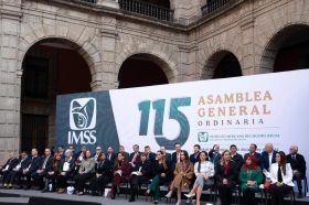 • La Maestra Delfina Gómez Álvarez acompaña en este evento a la Presidenta Claudia Sheinbaum Pardo y al Director General del IMSS, Zoé Robledo.