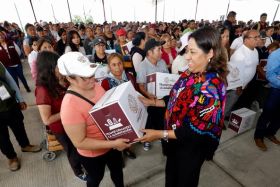 * Entrega GEM más de 3 mil nuevas tarjetas a mujeres de 10 municipios. * También se otorgaron de manera simbólica apoyos de Alimentación para el Bienestar y Servir para el Bienestar.