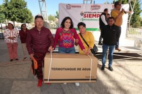 • Además, la mandataria supervisa la Base de Operaciones ’Agua Bendita’; entrega la remodelación del Campo de Futbol de Texcapilla y dona más de 11 mil libros a la Biblioteca Comunitaria.