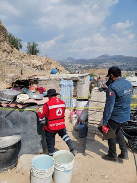 * El H. Ayuntamiento de Chimalhuacán exhorta a los vecinos de la zona afectada a desocupar sus inmuebles ante el riesgo de más deslaves.