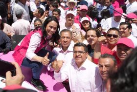 • En su camino rumbo a la gubernatura del Estado de México, la abanderada del PRI, PAN, PRD y Nueva Alianza estuvo acompañada por Eruviel Ávila, exgobernador de la entidad.