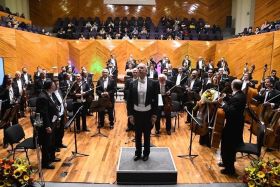 • Sube al podio de la agrupación Guido María Guida. • Interpretan obras de los alemanes Schumann y Brahms. • Dedican concierto a quien fuera la Secretaria de Cultura y Turismo.