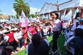 • La exalcaldesa fue arropada por militantes del Sol Azteca, a quienes pidió salir a las calles a convencer a la ciudadanía para lograr la reconciliación mexiquense.