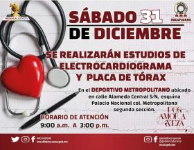 * Este sábado 31 de diciembre en las instalaciones del Deportivo Metropolitano ubicado en la calle Alameda Central s/n, esquina con Palacio Nacional, colonia Metropolitana.
