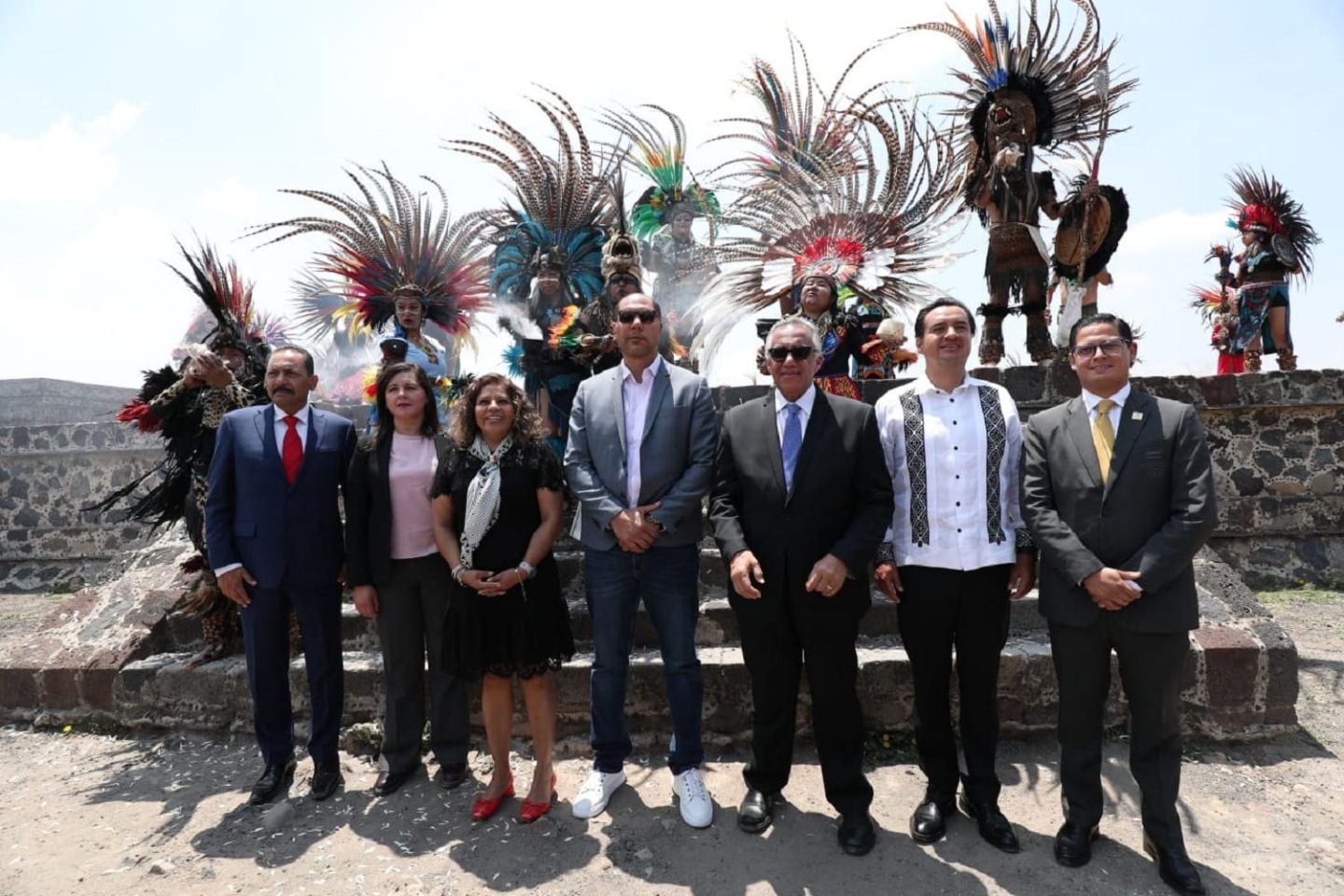La ceremonia estuvo enmarcada por uno de los espacios culturales más importantes del país y la entidad mexiquense, donde, a través de un rito ancestral en el basamento de la Pirámide de la Luna, se encendió el fuego nuevo, acompañado por un grupo de bailarines que presentaron una danza prehispánica.
